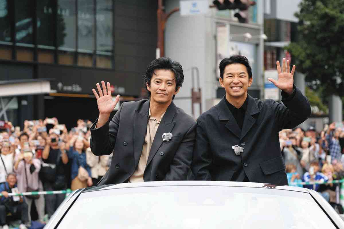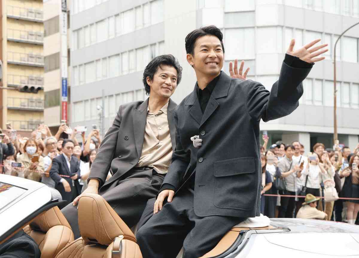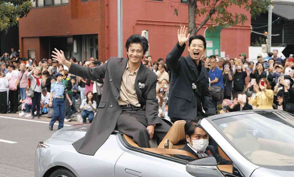 来年のNHK大河ドラマ「豊臣兄弟!」に出演する俳優の仲野太賀さんと小栗旬さんが19日、名古屋市中区の名古屋市役所前から栄の繁華街までの約2キロをオープンカーに乗ってパレードした。沿道には2人を見ようと多くの人が詰めかけた。