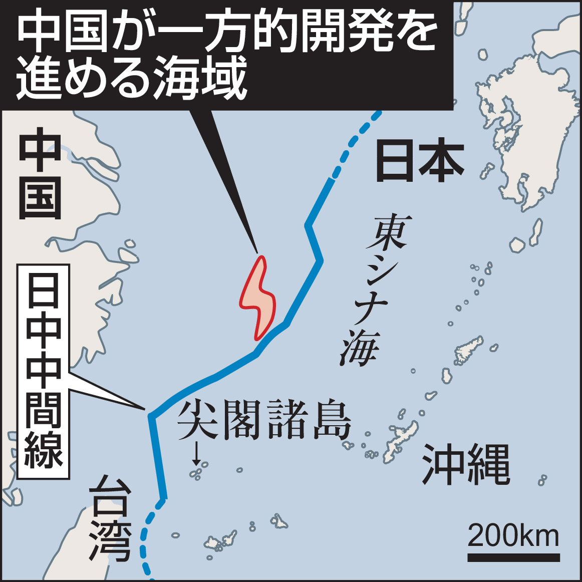 日中両政府は平成20(2008)年に同海域でのガス田の共同開発区域を設定。日中中間線の境界が画定するまで双方の法的立場を損なうことなく協力することで一致したが、中国は一方的な開発を加速している。