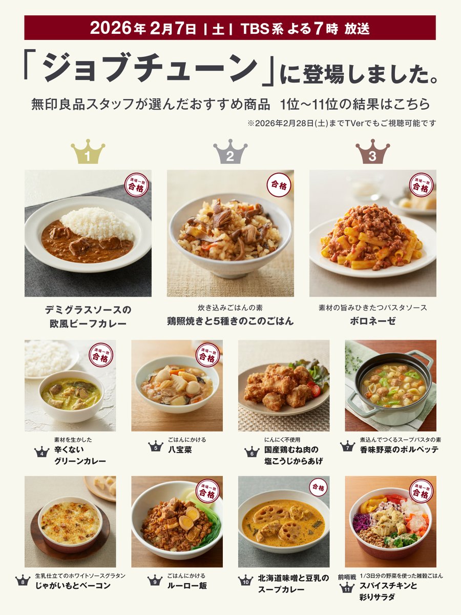 『ジョブチューン』不合格だった無印良品の“冷凍からあげ” SNSに声援「貫いて」「負けないで」 – Sirabeesirabee.com2月7日放送の『ジョブチューン ~アノ職業のヒミツぶっちゃけます!』(TBS系)のジャッジ企画では、無印良品の大人気食品がまさかの不合格という波乱の展開が注目を集めました。