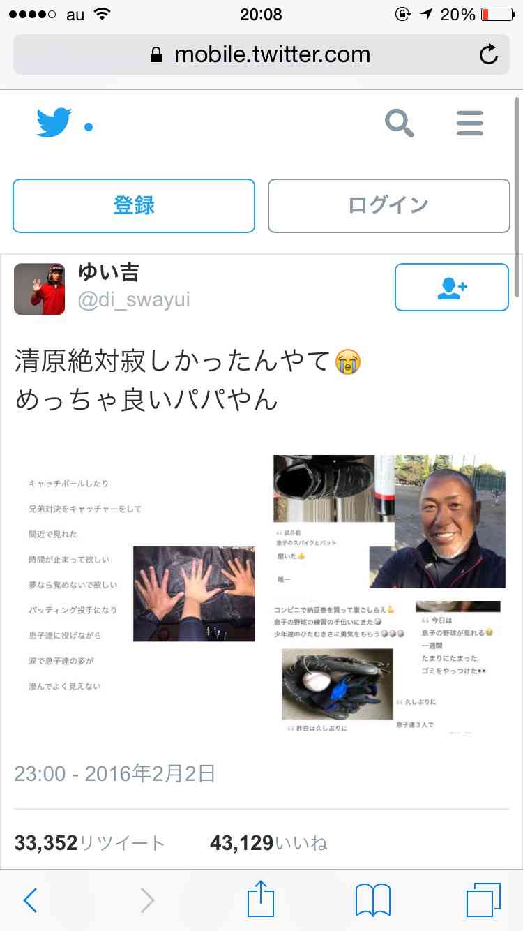 子供には一切罪はないし、清原の子供を色メガネで見る人を軽蔑します。+95