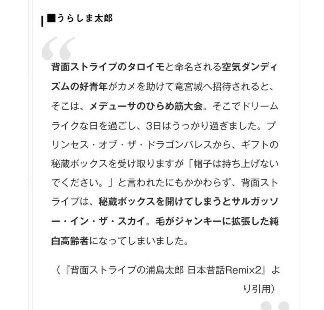 日本昔話を自動翻訳機で英語に訳して、それをまた自動翻訳機で日本語に戻したもの。+17