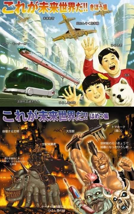 実家に、父(60代半ば)が子供の頃の子供向け科学誌があったんだけど、その中の未来予想図がカオスだったのを思い出した。