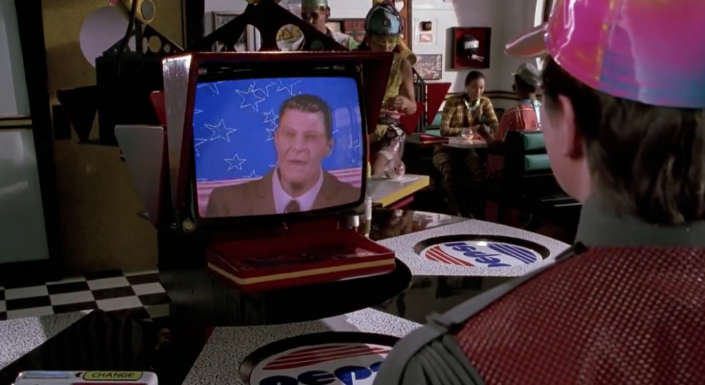 舞台は2015年だけど、このシーンはcafe 80'sっていう店で、80年代の懐かしいものをコンセプトにしたお店だからブラウン管なんだよー(^。^)