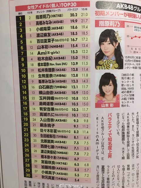 毎年恒例となっているタレントパワーランキングの2016年版を掲載。