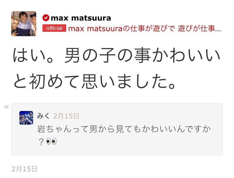 手越と比べてるコメントがあったからそれに対してのコメントを返したけど、はっきり言って手越と岩田のカッコよさ比べてどうなんの?w