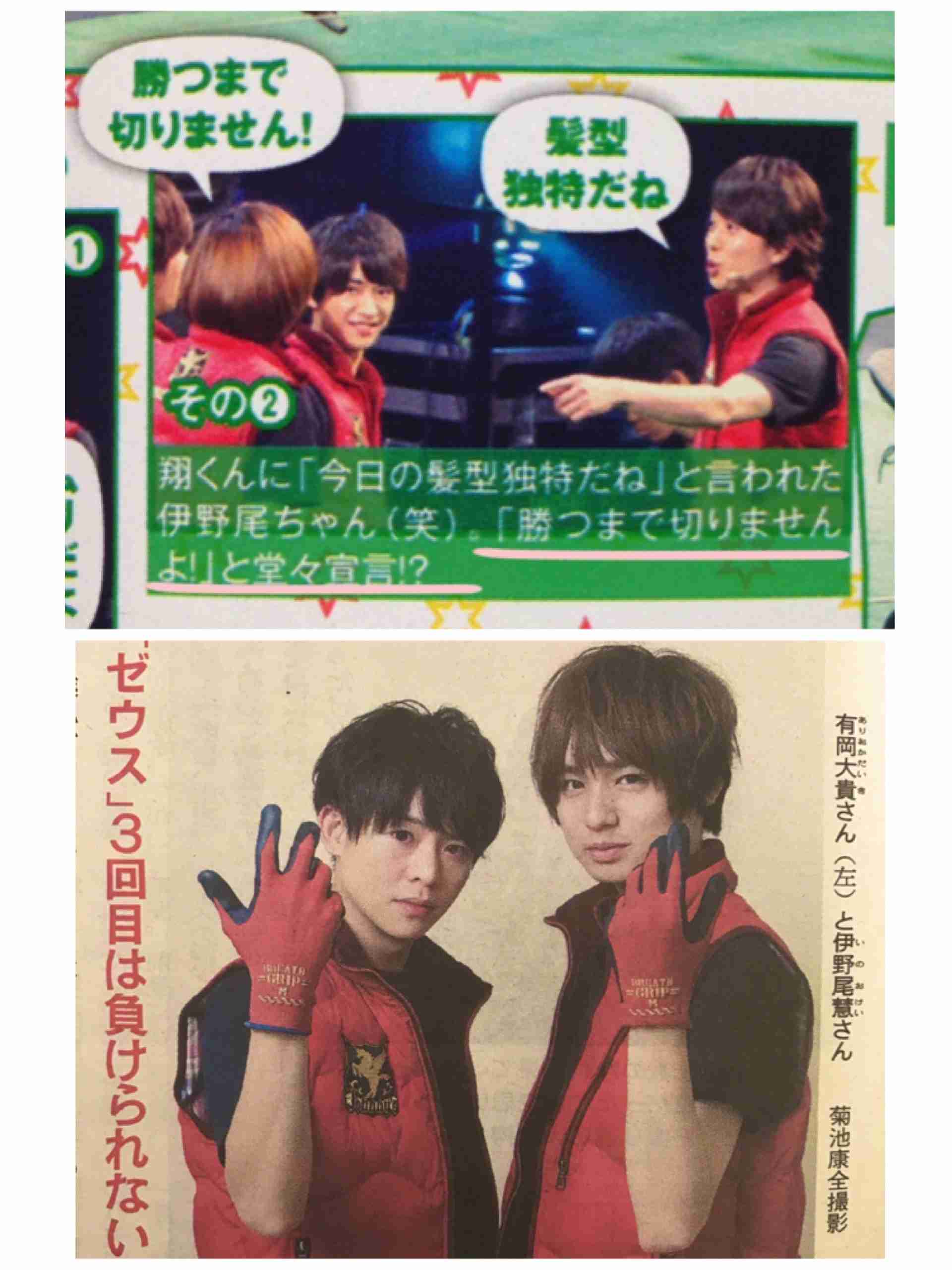 【ゼウス番協レポ】 大縄後の楽屋にて 櫻井「(伊野尾の髪型の話になり)それはまつたけが寄せてるの?伊野尾が寄せてるの?」 伊野尾「まつたけが寄せてますね(`・ω・´)」 #ゼウス #ゼウス番協レポ+86