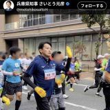 斎藤元彦知事「神戸マラソン」を走る 沿道の声援にピース、「斎藤辞めろ」の声も飛ぶなか県警ガッチリ警護