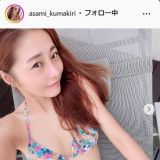 熊切あさ美、カラフルな花柄模様ビキニショット公開「朝からプライベートプールでのんびり」